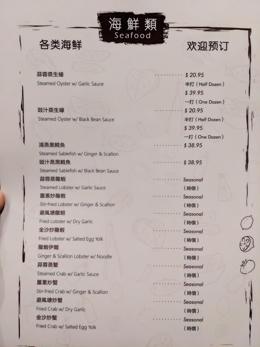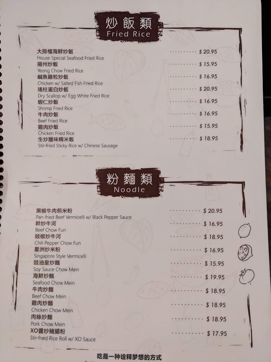 One standout section of the menu is the Chao Fan Lei Fried Rice selection, featuring various twists on this classic dish. Don't miss the Da Pai Dang Hai Xian Chao Fan, a house-special seafood fried rice bursting with flavors for just US$20.95. For a taste of home-style comfort, indulge in the Yang Zhou Chao Fan or the Yao Zhu Dan Bai Chao Fan, which elevates your dining experience with its premium ingredients and aromatic spices. If you're a seafood lover, the Hai Xian Lei Seafood section offers exquisite choices, including the alluring Steamed Oyster with Garlic Sauce, that takes the essence of the ocean straight to your plate.