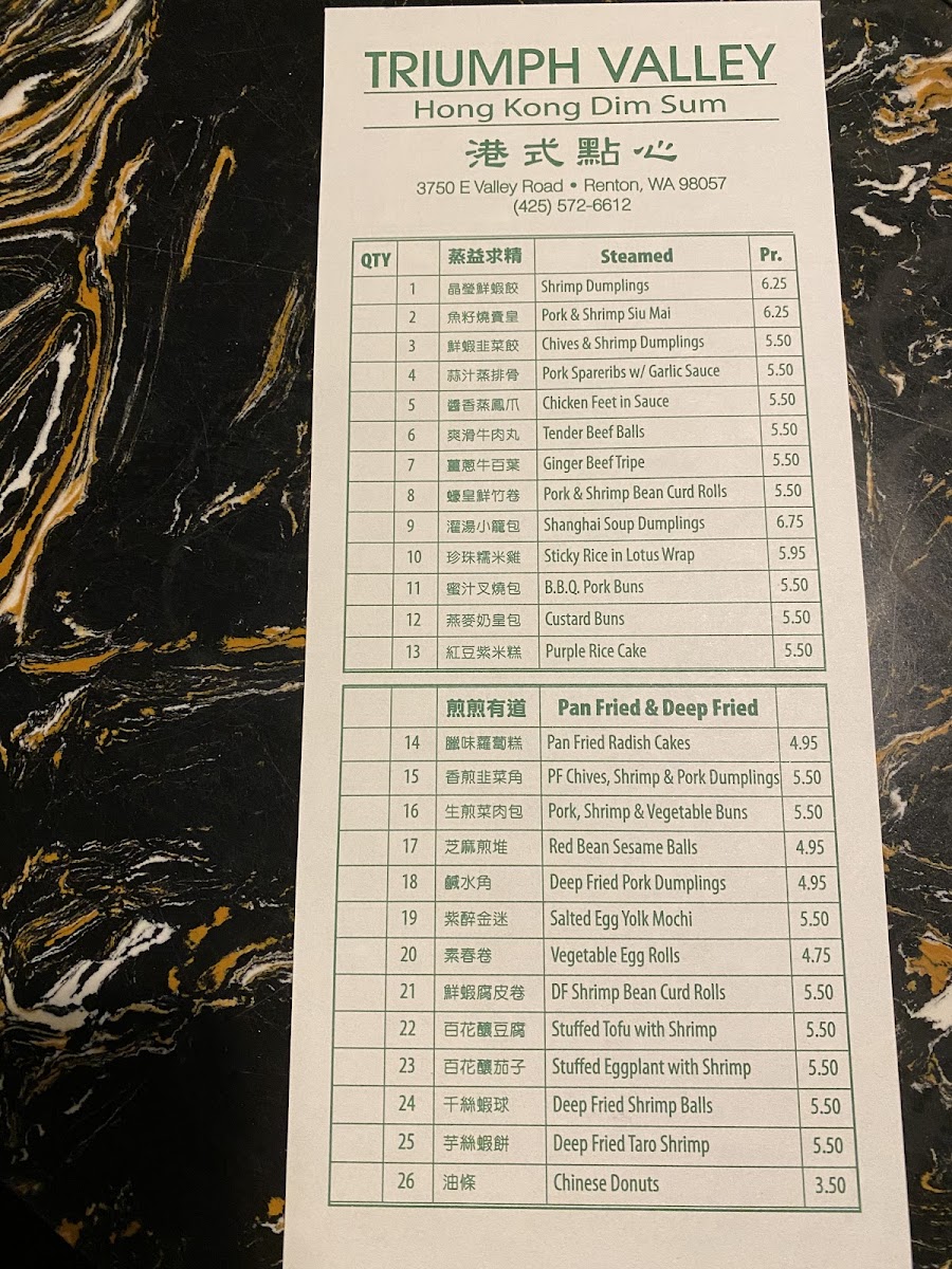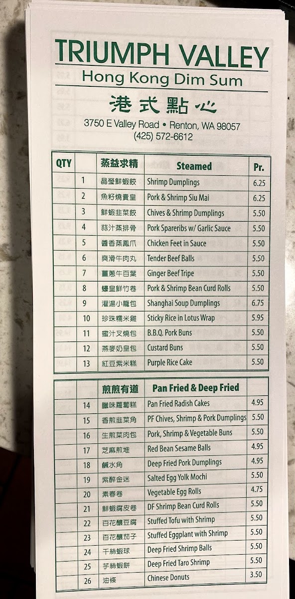 Welcome to Triumph Valley, a culinary gem nestled in Renton, WA, where the vibrant and rich flavors of Chinese cuisine await you. Located conveniently at 3750 E Valley Rd, this restaurant is a must-visit for those who crave authentic dim sum and heartwarming dishes that are sure to delight your taste buds.